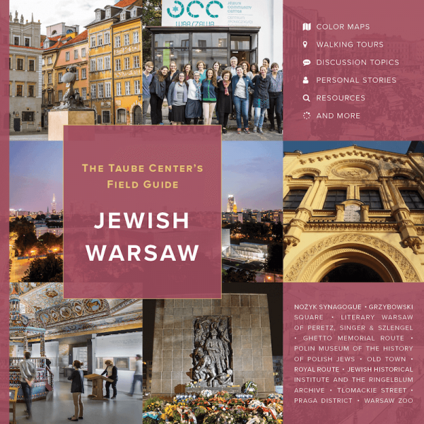 The Taube Center currently offers two e-publications for purchase: 1,000 Years of Jewish Life in Poland. A Timeline, which is available in English, Hebrew, German, and Polish and a new, expanded 2021 edition of the Field Guide to Jewish Warsaw.